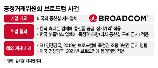 공정위는 브로드컴이 통신칩 시장에서의 우월적 지위를 활용해 한국 휴대폰, 셋톱박스 업체에 부당하게 불리한 '갑질 계약'을 맺었는지 의심하는 것으로 전해졌다.