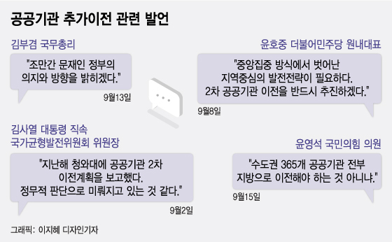 여당이 '2차 공공기관 지방 이전'을 위한 군불을 때기 시작했다. 지난 2019년 마무리된 1차 이전으로 수도권 소재 153개 공공기관이 지방에 둥지를 틀었는데, 추가로 120여개 공공기관을 지방으로 옮기겠다는 것이다.