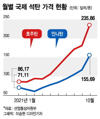 전력생산과 난방 등에 사용되는 석탄 가격은 지난 6일 기준 톤당 247.5달러(호주산 현물)로 최근 5년새 최고치를 기록했다. 가스가격이 빠르게 오르며 석탄발전 가동이 늘어난 탓이다. 여기에 탈석탄 기조가 확대되며 석탄광산 투자와 생산이 위축된 것도 원인이다. 실제로 영국은 2022년 폐지 예정이던 석탄발전을 지난달 6일 재가동했다. 독일도 지난달 석탄발전량이 2020년 이후 최대치를 기록했다. 반면 중국의 환경정책 강화와 인도네시아 폭우, 북미·러시아 철도보수 등으로 석탄 공급은 줄었다.