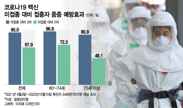 백신 공화국의 어두운 면만 있었던 것은 아니다. 이제 코로나19의 치명률은 사실상 독감 수준이 됐다. 바이러스가 변이를 겪으며 독성이 반감된 이유도 있지만, 백신의 역할이 컸다는 점은 통계로 입증된다. 질병관리청의 예방접종 효과분석 결과에 따르면 지난 달 15일 기준, 3차 접종 후 확진자는 미접종 확진자에 비해 중증(사망 포함)으로 진행할 위험이 95% 낮은 것으로 집계됐다. 2차 접종 후 확진자도 중증 진행 위험이 67.9% 낮았다. 애초에 중증 예방은 감염 예방 이상으로 백신으로부터 얻을 수 있는 중요한 효과였다.