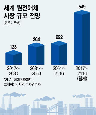 원전 1기 해체에 드는 비용은 약 1조원에 달한다. 앞으로 약 100년 동안 550조원 규모에 이를 것으로 예상되는 전 세계 원전 해체 시장이란 기회가 우리 눈 앞에 열리는 셈이다.