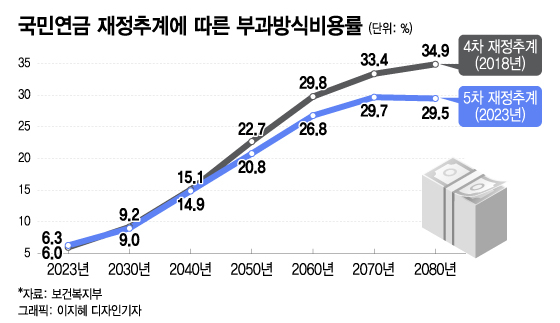 2018년 재정추계 당시에는 2년 후 보험료율을 올린다고 가정할 때 적립배율 1배의 필요보험료율이 16.02%였다. 현행 보험료율이 9%라는 걸 감안하면 5년 새 부담이 커진 것이다. 전병목 재정추계전문위원장은 "연금개혁이 늦어질수록 미래 청년세대의 부담이 늘어날 것"이라며 "(필요보험료율이 상승한 것은) 연금개혁이 필요성을 보여주는 결과"라고 강조했다.