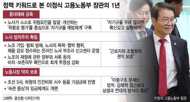 윤석열 정부는 1년간 원·하청 이중구조 개선, 법치주의 확립 등 노동시장의 오래된 숙제를 풀기 위한 토대 마련에 힘을 쏟았다.