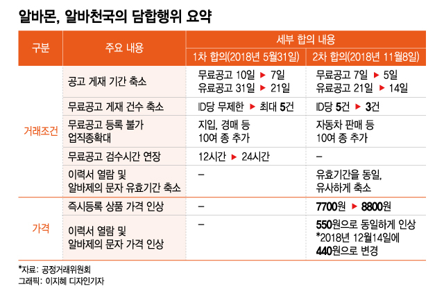 온라인 구인·구직 플랫폼 알바천국·알바몬이 무료 구인 기간 등 거래조건을 담합했다가 공정거래위원회로부터 적발됐다.