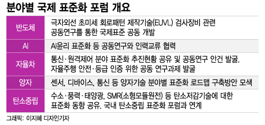 국제 표준화를 추진하는 분야는 △반도체 △AI △자율차 △양자정보기술 △청정에너지 △핵심광물 공급망 △IoT(사물인터넷)등 자동화·연결 등 14개 분야다. 이 분야와 관련된 기술 동향과 국제 표준화 현황을 공유하고 중장기 표준화 협력 방안을 논의한다.