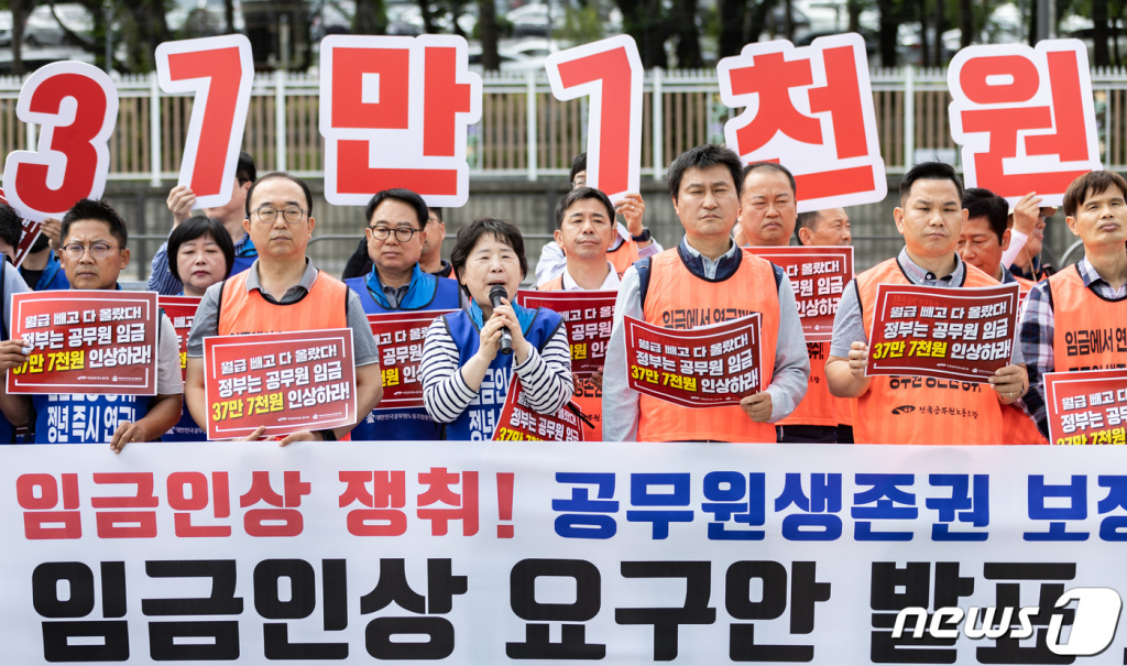 9급 공무원 1호봉이 매번 최저임금과 비교되면서 정부는 내년 공무원 임금을 직급에 상관없이 최저임금 인상률과 똑같이 올해보다 2.5% 인상키로 했다. 내년 일반직 9급 1호봉의 기본급은 올해보다 4만4270원 오른 181만5070원이 된다. 2020년(2.8%) 이후 4년 만에 가장 큰 오름 폭이다. 공무원 임금은 2021년에는 0.9%, 지난해와 올해는 각각 1.4%, 1.7% 인상됐다. 그렇지만 공무원들의 기대치엔 한참 미치지 못한다. 올해 노조는 물가상승률 등 현실을 반영해 내년 임금 37만7000원 정액인상을 요구하다 최종 4.2% 인상을 요구했다.