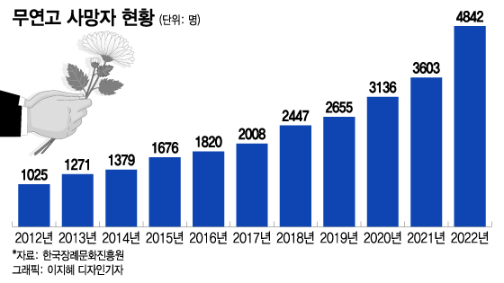 복지부는 공영장례 표준조례를 만드는 등 급증하는 무연고 사망자에 대응한다는 계획이다. 2012년 1025명이었던 무연고 사망자는 2022년 4842명으로 늘었다. 지난해에는 상반기까지만 2658명의 무연고 사망자가 발생했다. 복지부 관계자는 "올 1분기 중으로 무연고 사망자의 공영장례를 위한 표준조례를 만들어 지원할 예정"이라고 말했다.