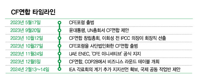 7일 관계부처에 따르면 최남호 산업통상자원부 차관과 이회성 CF연합 회장은 오는 13~14일 프랑스 파리에서 열리는 IEA(국제에너지기구) 각료회의에서 CFE이니셔티브 추가 지지 선언을 확보할 계획이다. 현재 9개국이 긍정적으로 검토 중인 것으로 전해졌다.