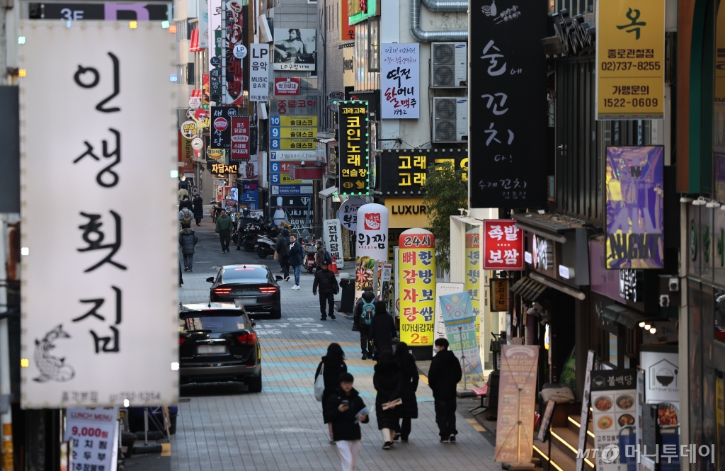 ![[서울=뉴시스] 황준선 기자 = 사진은 12일 음식점과 주점 등이 밀집된 서울 종로구 종각 젊음의 거리 모습. 2024.01.12. /사진 =뉴시스 제공](https://thumb.mt.co.kr/cdn-cgi/image/f=avif/21/2024/04/2024040913505846467_1.jpg)
