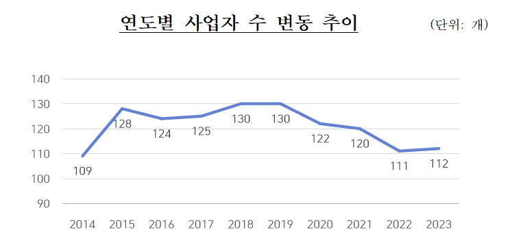 다단계판매업자 수는 2018년 130개를 기록한 이후 2022년까지 감소 추세를 보였지만 지난해 1개 업체가 증가한 것으로 나타났다. 지난해 중 11개 업체가 시장에 신규 진입하고 10개 업체가 폐업한 결과다.