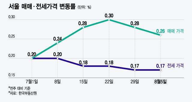 한국부동산원에 따르면 8월 첫째 주(5일 기준) 서울 아파트 전셋값은 전주와 같은 0.17%의 상승률을 기록했다. 64주째 오름세다.