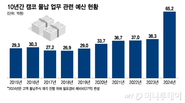 올해 예산 규모는 65억2000만원으로 역대 최대 규모다. 고액 물납주식의 매각 진행을 위해 예비비(27억원)까지 추가 편성한 결과다. 대표적으로 넥슨 지주회사 엔엑스씨(NXC)의 비상장주식 4조7000억원대(지분 85만1968주) 매각을 추진 중이다.