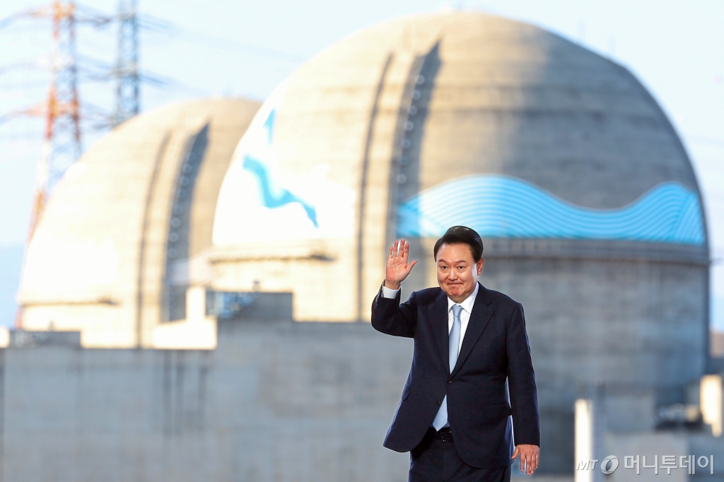 ![[울진=뉴시스] 최진석 기자 = 윤석열 대통령이 30일 경북 울진군 한국수력원자력 한울원자력본부에서 열린 '신한울 원전 1·2호기 종합준공 및 3·4호기 착공식'에서 인사하고 있다. (사진=대통령실 제공) 2024.10.30. photo@newsis.com *재판매 및 DB 금지 /사진=최진석](https://thumb.mt.co.kr/cdn-cgi/image/f=avif/21/2024/11/2024110815590713145_1.jpg)