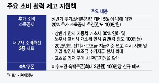 아울러 올 상반기 추가소비분(전년 대비 5% 이상)에 대해 20% 추가 소득공제를 추진한다. 한도는 100만원이다.