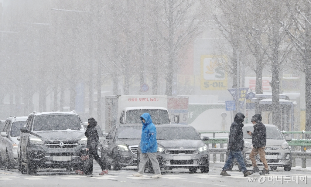 ![[광주=뉴시스] 이영주 기자 = 광주지역에 발효된 대설주의보로 폭설이 내리는 7일 오후 광주 북구 중흥동 한 횡단보도에서 시민들이 길을 건너고 있다. /사진=뉴시스](https://thumb.mt.co.kr/cdn-cgi/image/f=avif/21/2025/02/2025021207215855739_1.jpg)