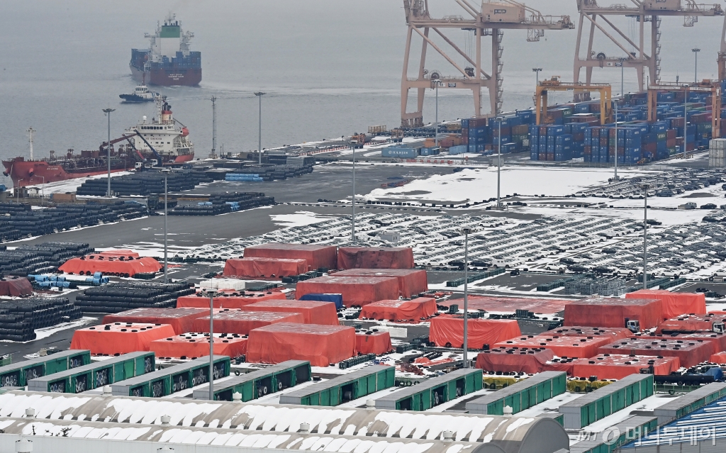 ![[평택=뉴시스] 김종택 기자 = 사진은 10일 경기도 평택항 수출입 부두에 철강 제품과 화물 컨테이너가 쌓여 있는 모습. 2025.02.10. /사진=김종택](https://thumb.mt.co.kr/cdn-cgi/image/f=avif/21/2025/02/2025021210565367937_1.jpg)