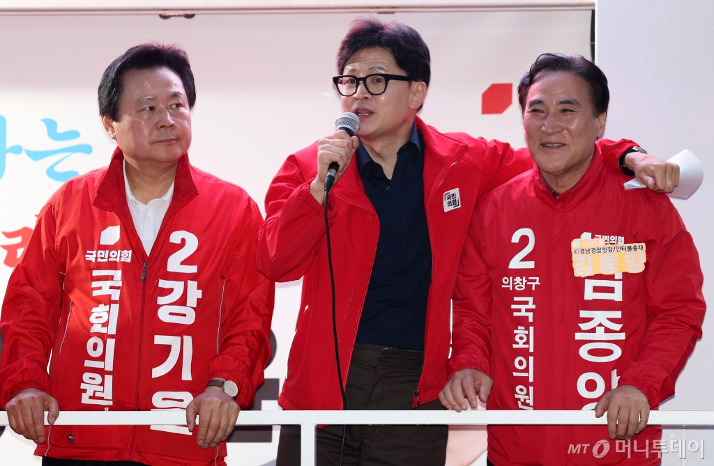 ![[창원=뉴시스] 추상철 기자 = 한동훈 국민의힘 비상대책위원장이 1일 오후 경남 창원 성산구 반송시장 앞에서 열린 ‘국민의힘으로 창원살리기’ 지원유세에서 최형두 경남 창원시마산합포구, 강기윤 창원시성산구, 김종양 창원시의창구 후보의 지지를 호소하고 있다. 2024.04.01. scchoo@newsis.com /사진=추상철](https://thumb.mt.co.kr/cdn-cgi/image/f=avif/21/2025/02/2025022714175398856_1.jpg)