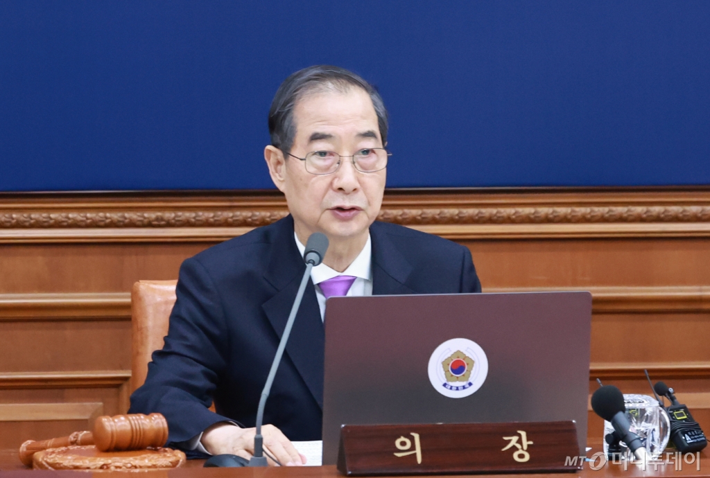 ![[서울=뉴시스] 조수정 기자 = 한덕수 대통령 권한대행 국무총리가 25일 정부서울청사에서 열린 국무회의를 주재하고 있다. (대통령실통신사진기자단) 2025.03.25. /사진=조수정](https://thumb.mt.co.kr/cdn-cgi/image/f=avif/21/2025/03/2025032616525579811_1.jpg)
