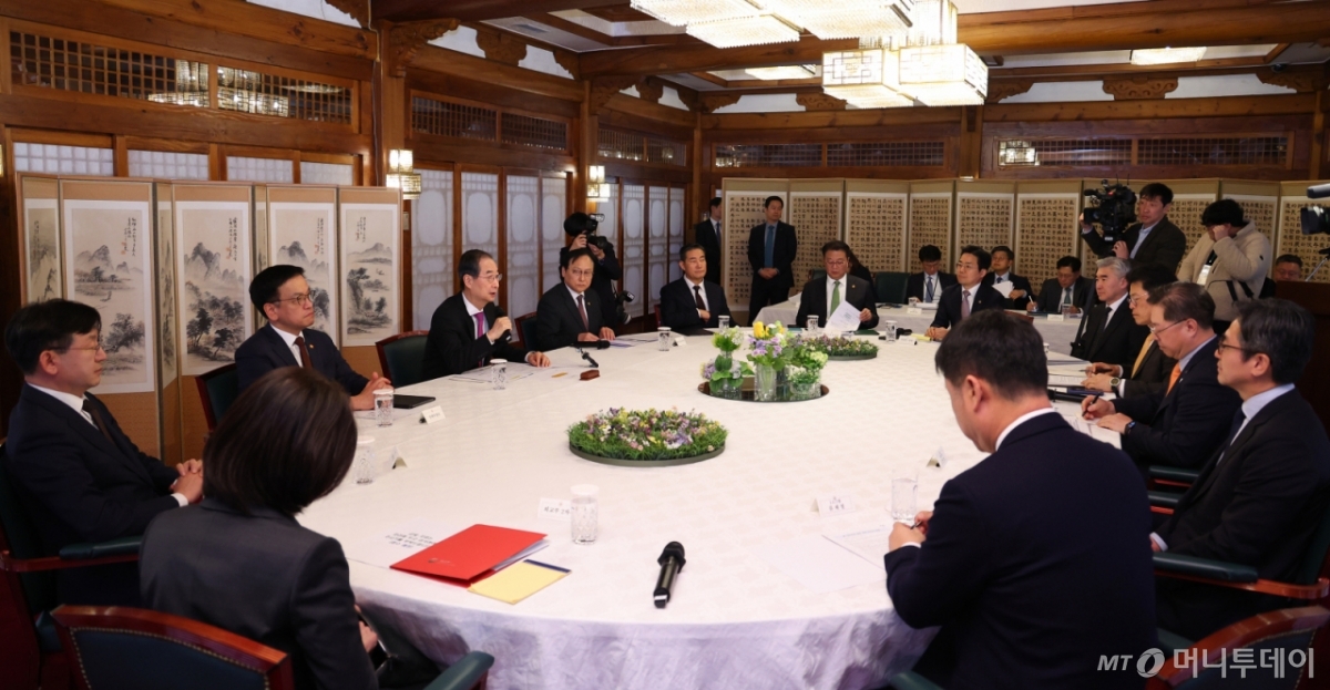 ![[서울=뉴시스] 고범준 기자 = 최상목 경제부총리 겸 기획재정부 장관이 3일 서울 중구 은행회관에서 열린 '거시경제금융현안간담회'에서 모두발언을 하고 있다. 왼쪽부터 이복현 금융감독원장, 이창용 한국은행 총재, 최상목 경제부총리 겸 기획재정부 장관, 김병환 금융위원장. 2025.04.03. /사진=고범준](https://thumb.mt.co.kr/cdn-cgi/image/f=avif/21/2025/04/2025040316531011894_2.jpg)