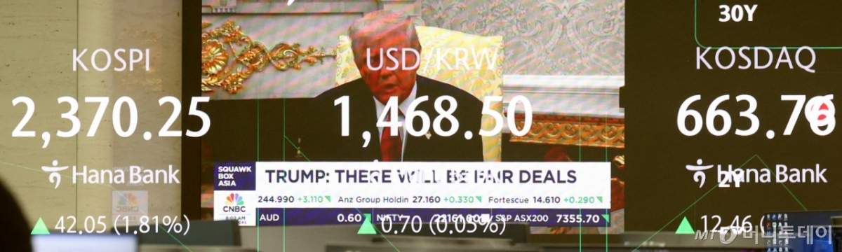 미국과 중국의 관세전쟁이 격화되면서 위험통화로 분류되는 원화는 약세 압력을 받고 있다. 도널드 트럼프 미국 대통령은 7일(현지시간) 자신의 소셜미디어를 통해 "중국이 8일까지 34% 관세를 철회하지 않으면 중국에 50% 추가 관세를 부과할 것"이라고 밝혔다.