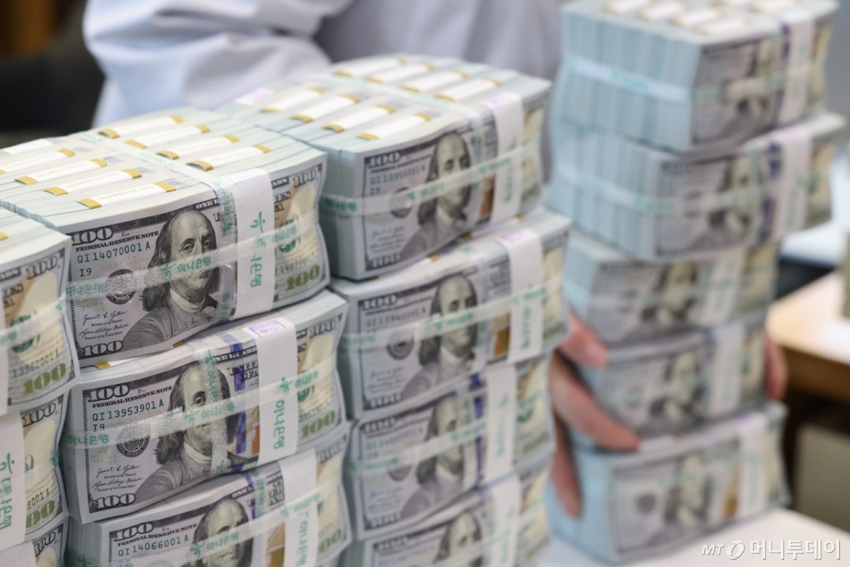 ![[서울=뉴시스] 황준선 기자 = 22일 서울 중구 하나은행 위변조대응센터에서 직원이 달러화를 정리하고 있다./사진=뉴시스](https://thumb.mt.co.kr/cdn-cgi/image/f=avif/21/2025/04/2025042309054272188_1.jpg)