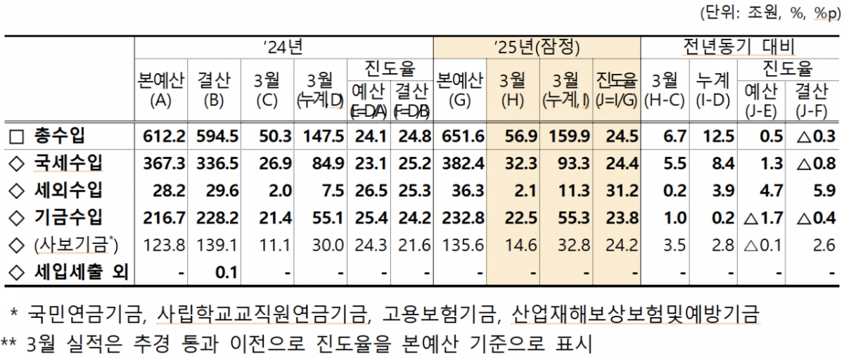 총수입 진도율은 24.5%로, 전년보다 0.5%p(포인트) 상승했다.