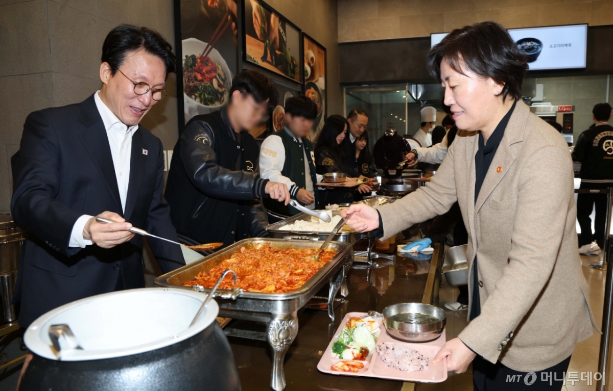 ![[서울=뉴시스] 청사사진기자단 = 김민석 국무총리와 송미령 농림축산식품부 장관이 17일 오전 서울 종로구 성균관대학교 은행골식당에서 학생들과 함께 '천원의 아침밥' 식사 배식을 하고 있다. 2025.11.17. photo@newsis.com /사진=](https://thumb.mt.co.kr/cdn-cgi/image/f=avif/21/2025/11/2025112510560635005_1.jpg)