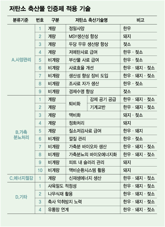 저탄소 영농활동은 축산 농가 현장에서 축종을 사양할 때 적용되어야 하기 때문에 농가의 자발적 참여 없이는 축산 분야 온실가스 저감이 쉽지 않다. 올해 현장 의견을 수렴해 기존 월별로 제출해야했던 증빙자료 제출주기를 분기별로 바꿔 제출서류를 간소화한 것도 농가 부담을 줄이기 위해서 였다.