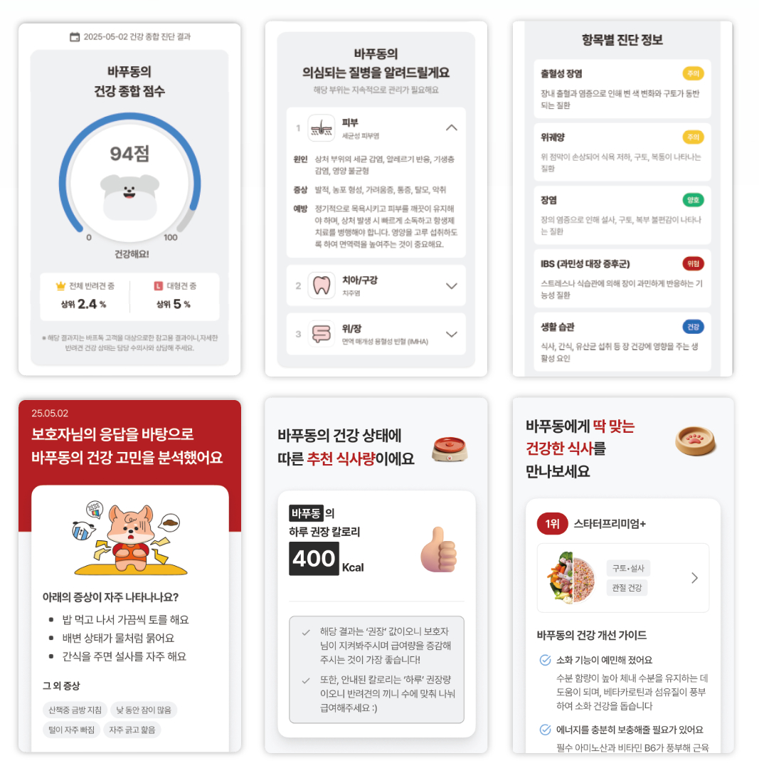 또 이를 기반으로 제조된 맞춤형 펫 푸드를 정기적으로 배송한다. 특히 반려동물의 생활 특성과 신체 조건을 정밀하게 고려하여 체계적인 영양 관리를 돕는다는 점이 이 서비스의 핵심 강점이다.
