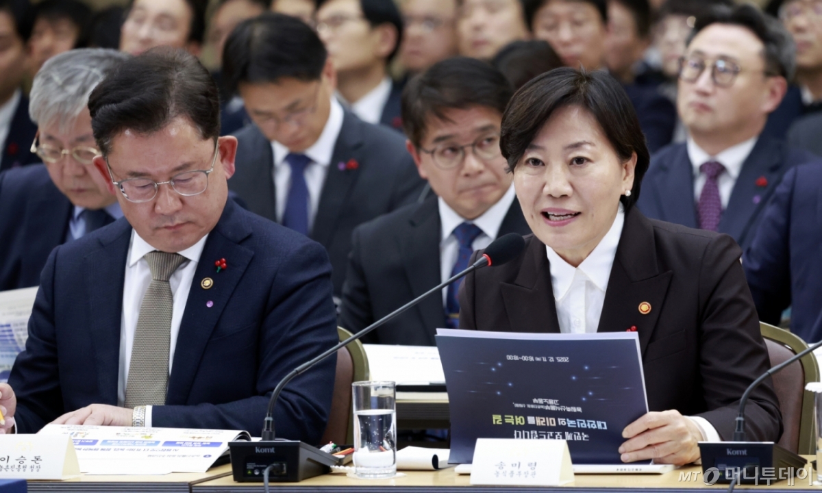 ![[세종=뉴시스] 최동준 기자 = 송미령 농림축산식품부 장관이 11일 세종시 정부세종컨벤션센터에서 '희망찬 농업·농촌, 모두가 행복하게 일하는 나라' 농림축산식품부 업무보고를 하고 있다. 왼쪽은 이승돈 농촌진흥청장. 2025.12.11. /사진=최동준](https://thumb.mt.co.kr/cdn-cgi/image/f=avif/21/2026/02/2026022212292034859_1.jpg)
