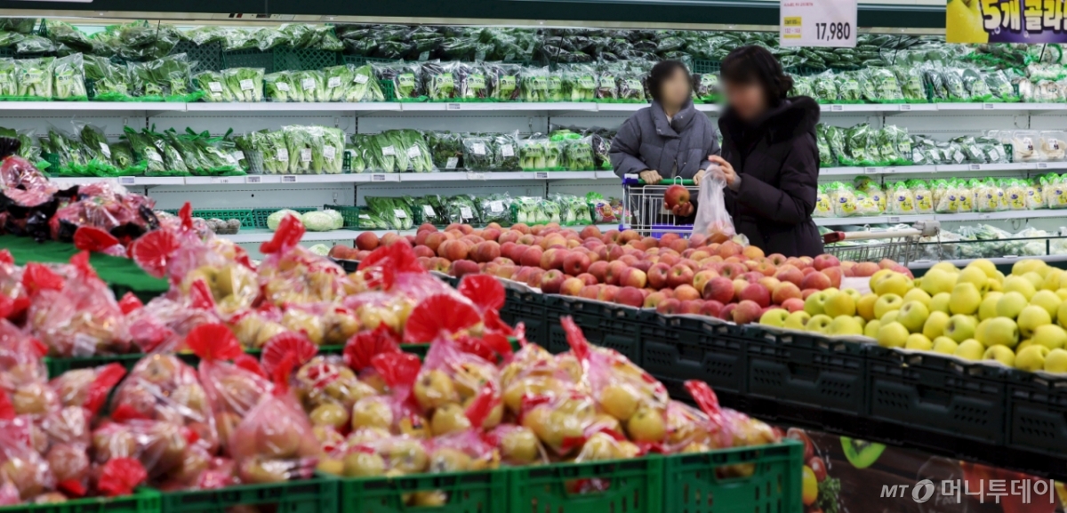 ![[서울=뉴시스] 홍효식 기자 = 반도체 가격과 농림수산품 물가 오름세에 생산자물가가 4개월 연속 오름세를 이어가는 가운데 20일 서울 시내 한 대형마트에서 시민들이 농림수산품을 살펴보고 있다. 한국은행이 이날 발표한 '2025년 12월 생산자물가지수(잠정)'에 따르면 지난달 생산자물가지수가 121.76(2020년=100 기준)로 전월 대비 0.4% 상승했다고 밝혔다. 이에 따라 생산자물가지수는 넉달 연속 오름세를 보였다. 2025년 연간 상승률은 1.2%를 기록했다. 2026.01.20.](https://thumb.mt.co.kr/cdn-cgi/image/f=avif/21/2026/02/2026022710100911646_1.jpg)