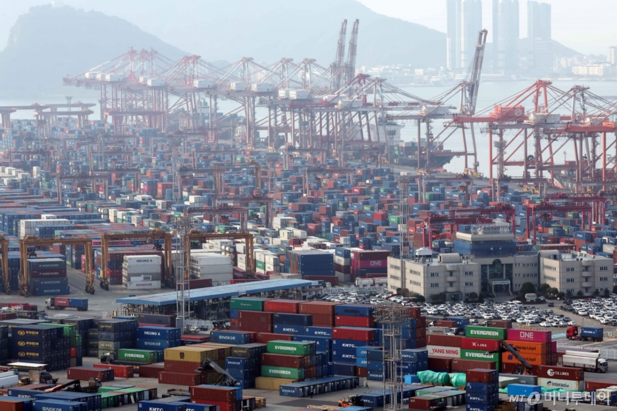 ![[부산=뉴시스] 하경민 기자 = 관세청은 지난 1~10일 수출이 전년 동기 대비 55.6%(76억7000만 달러) 증가한 215억 달러로 집계됐다고 11일 밝혔다. 이는 매월 10일간 수출 실적으로 역대 최대 기록이다. 이날 부산 남구 신선대 부두 야적장에 수출입 컨테이너가 쌓여 있다. 2026.03.11. yulnetphoto@newsis.com /사진=하경민](https://thumb.mt.co.kr/cdn-cgi/image/f=avif/21/2026/03/2026031208303937537_1.jpg)
