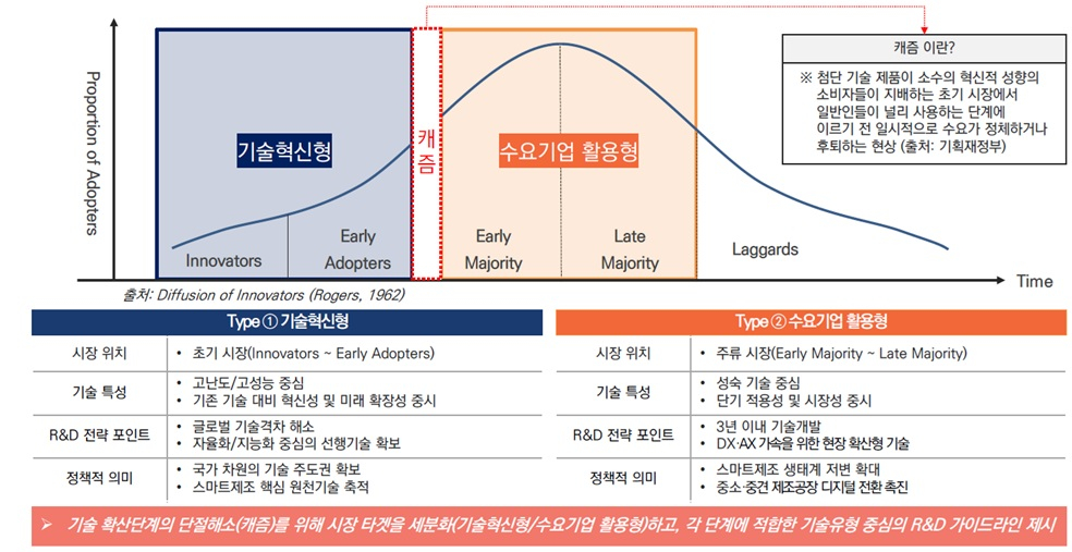기술혁신형(18개)은 초기 시장 진입과 고난도·고성능의 선행기술 확보가 목적으로 글로벌 기술격차 해소와 국가 차원의 기술주도권 확보를 지향한다.