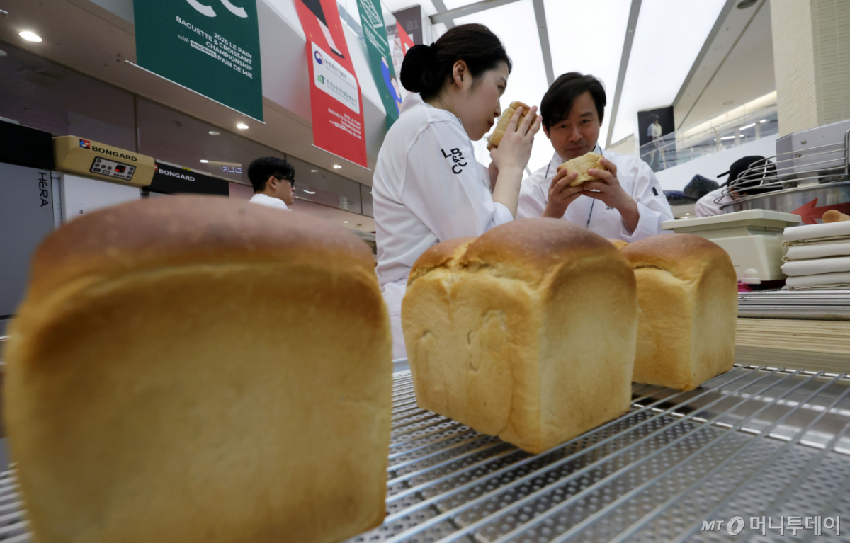 ![[서울=뉴시스] 홍효식 기자 = 6일 서울 강남구 코엑스에서 열린 우리밀 뺑드미 대회에 참가한 제빵사와 심사위원이 갓 구워진 빵의 향을 점검하고 있다. 르빵 베이커리가 주최하는 기존 대회는 바게트와 크루아상 분야만 개최되었으나, 올해는 농식품부의 예산 및 원료 지원으로 ‘국산 밀 분야’가 최초로 신설되었다. 특히, 우리밀 뺑드미 대회에서 사용되는 밀가루는 올해 농식품부가 시범 추진한 블렌딩한 원맥을 원료로 활용되는 첫 사례다. 2025 르빵 바게트&크루아상 챔피언십 with 우리밀 뺑드미 챔피언십은 10일까지 진행한다. 2025.11.06. yesphoto@newsis.com /사진=홍효식](https://thumb.mt.co.kr/cdn-cgi/image/f=avif/21/2026/03/2026032613361918441_1.jpg)