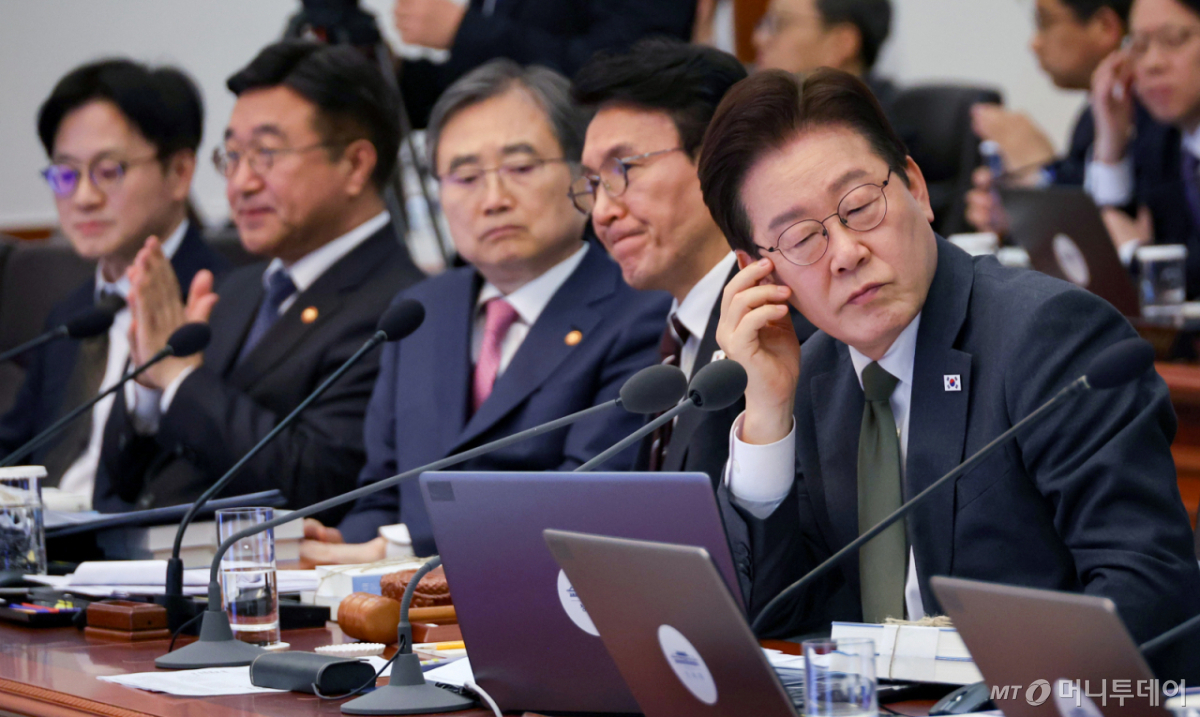 ![[서울=뉴시스] 최동준 기자 = 이재명 대통령이 14일 청와대에서 열린 국무회의 겸 비상경제점검회의에서 참석자 발언을 듣고 있다. 2026.04.14.](https://thumb.mt.co.kr/cdn-cgi/image/f=avif/21/2026/04/2026041413013173434_1.jpg)