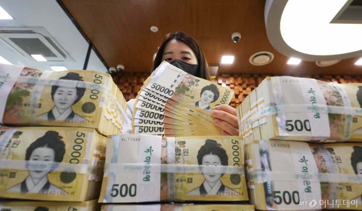 ![[서울=뉴시스] 권창회 기자 = 15일 서울 중구 하나은행 위변조대응센터에서 직원이 원화를 정리하고 있다.](https://thumb.mt.co.kr/cdn-cgi/image/f=avif/21/2026/04/2026041511111244321_1.jpg)