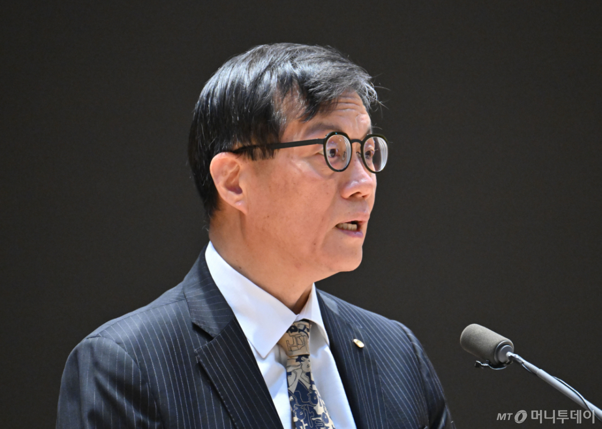 ![[서울=뉴시스] 박주성 기자 = 이창용 한국은행 총재가 20일 오전 서울 중구 한국은행 별관에서 열린 이임식에서 이임사를 하고 있다. (공동취재). 2026.04.20.](https://thumb.mt.co.kr/cdn-cgi/image/f=avif/21/2026/04/2026042014174653491_1.jpg)