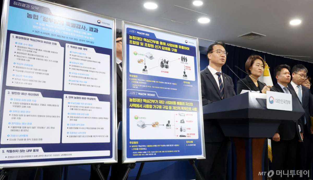 ![[서울=뉴시스] 추상철 기자 = 김영수 국무조정실 국무1차장이 9일 오전 서울 종로구 정부서울청사에서 농협 정부합동 특별감사 결과 브리핑을 하고 있다. 2026.03.09. scchoo@newsis.com /사진=추상철](https://thumb.mt.co.kr/cdn-cgi/image/f=avif/21/2026/04/2026042016412532344_1.jpg)