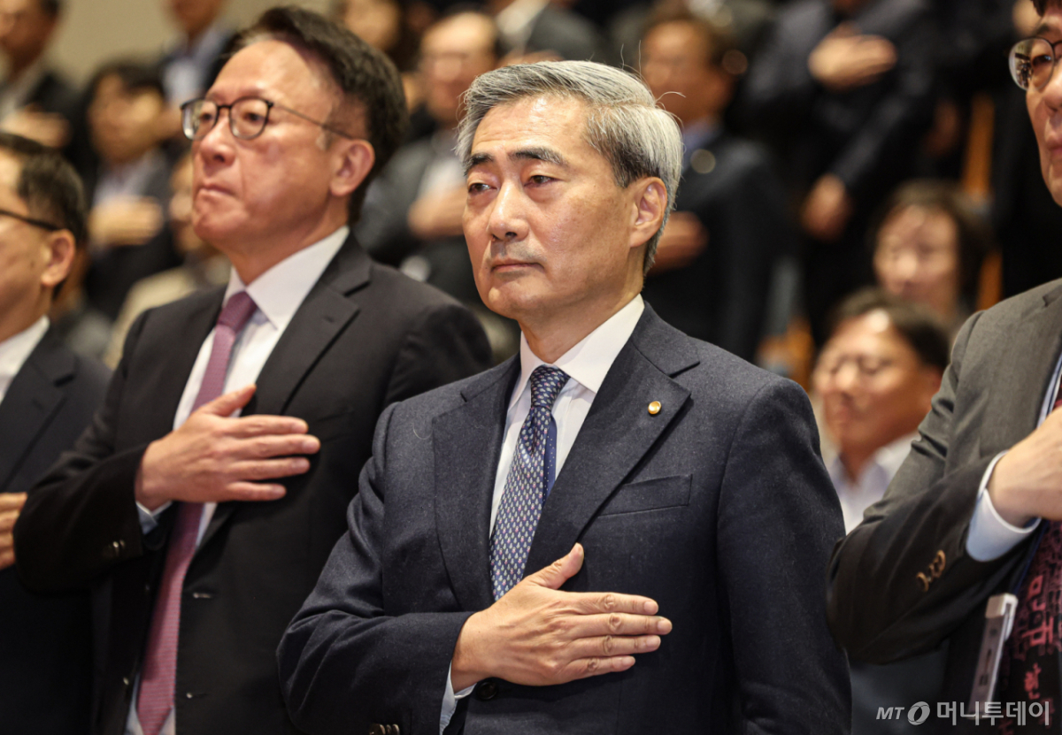 ![[서울=뉴시스] 조수정 기자 = 신현송 신임 한국은행 총재가 21일 오전 서울 중구 한국은행에서 열린 취임식에서 국민의례 하고 있다. (공동취재) 2026.04.21.](https://thumb.mt.co.kr/cdn-cgi/image/f=avif/21/2026/04/2026042111384366837_1.jpg)