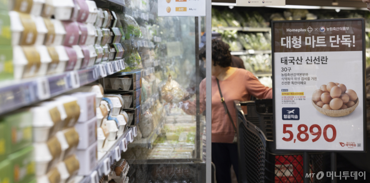 ![[서울=뉴시스] 김근수 기자 = 정부가 계란 수급 안정을 위해 수입한 태국산 신선란이 19일 서울 강서구 홈플러스 강서점에서 계란이 판매되고 있다. 농림축산식품부는 이달 말까지 들여와 순차적으로 시중에 공급할 예정이라고 밝혔다. 한 판(30구)에 5천890원으로, 국내 계란 평균 소매가보다 약 15% 저렴하다고 밝혔다. 2026.04.19.](https://thumb.mt.co.kr/cdn-cgi/image/f=avif/21/2026/04/2026042213505235416_1.jpg)