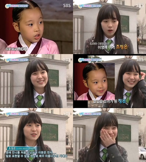 지금은 17세 소녀가 된 조정은은 "영애 언니를 처음 만났는데 이분은 천사…말로 표현할 수 없을 정도로 매우 아름다우신거에요"라며 "조금 부담스러웠어요. 제가 아역인데 닮지 않았다고 하면 어쩌지"라고 당시를 회상했다.