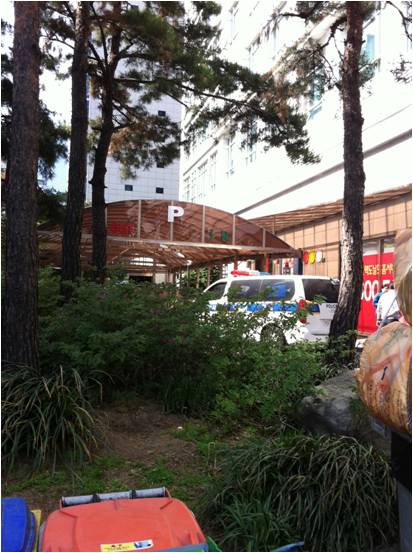 오피스텔 상가 앞 주차장 입구에 앰뷸런스 3대가 대기 중이고, 주변에 인파가 몰린 장면이다. “송 아나운서가 떨어진 주차장 입구 지붕이 플라스틱이 아닌 천막 재질이었다면 좀 더 버텨줬을지도 모르는데”, “별로 좋은 사진은 아닌 것 같다”는 댓글이 달렸다. 이 사진은 현재 삭제되고 글만 남은 상태다.