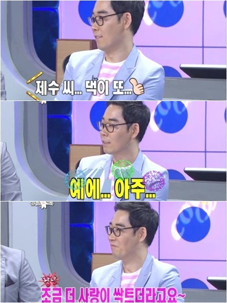 "아내의 집안에 대해서는 언제 알게 됐냐"는 김구라의 집중 추궁에는 "사귀고 난 3개월 뒤에 알게 됐다. 아버지가 사업을 한다고 하셔서 어떤 사업을 하냐고 물었다"라며 "(그 이후) 좀 더 사랑이 싹트더라"고 너스레를 떨기도.