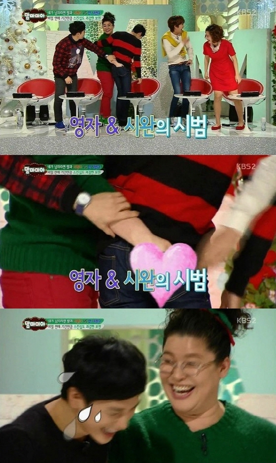 이날 '맘마미아'에서 김보민이 "여자가 남자의 바지 뒷주머니에 손을 넣고 데이트하는 것이 소원이었다"라고 말하자 이영자는 임시완을 일으켜 임시완의 바지 뒷주머니에 손을 넣고 엉덩이를 주물렀다. 이후 이영자는 임시완에게 "기분이 어땠느냐"고 묻기까지 했고 임시완은 "갑자기 덥석 엉덩이를 주물럭거리니까 당황했다"고 말했다.