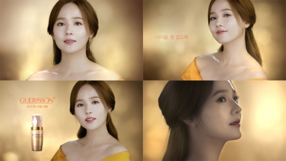 유진은 '게리쏭 오일 세럼' 광고에서 나이를 가늠할 수 없는 동안 미모를 뽐냈다.