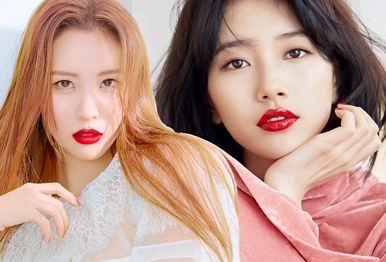 가수 겸 배우 크리스탈과 그룹 마마무의 솔라는 매트한 질감의 립스틱을 선택해 입술선을 따라 꼼꼼히 채워바른 '풀 립' 메이크업을 연출했다.