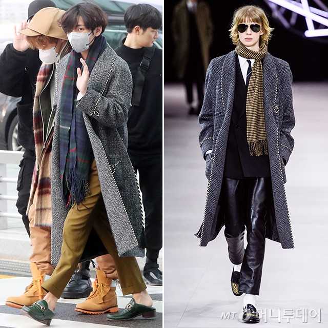 [스타일 몇대몇] 미국 출국날 공항 패션으로 '셀린느' 2019 가을 컬렉션 코트 착용한 BTS 뷔