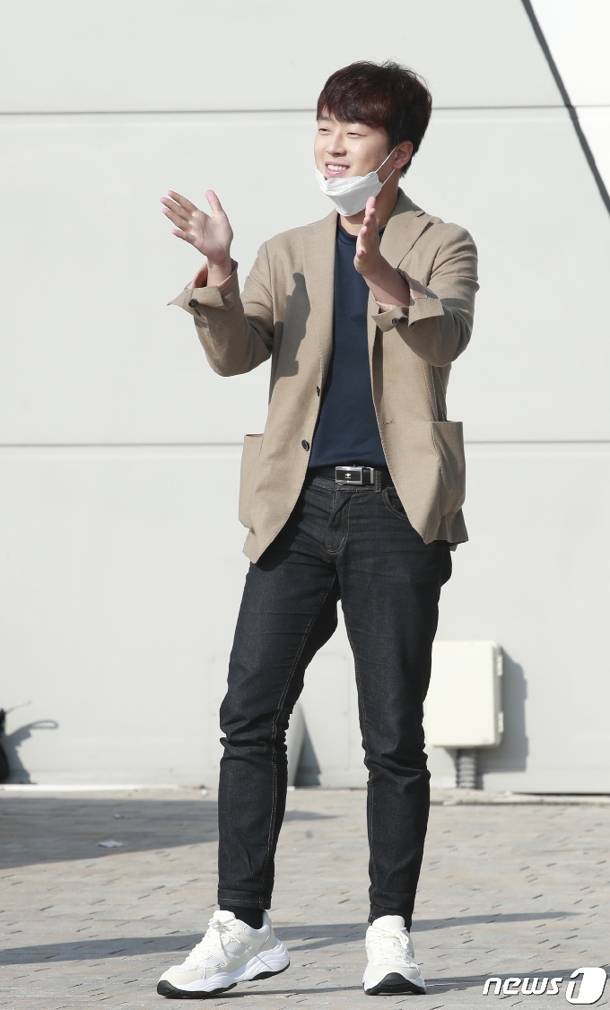 (인천=뉴스1) 박혜성 기자 = ‘미스터트롯’ 이찬원이 23일 오전 인천광역시 중구 한 스튜디오에서 열린 '미스터트롯 : 사랑의 콜센터' 녹화를 위해 출근했다.
