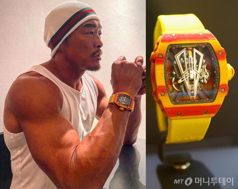 이날 추성훈은 한 손에 노란색 밴드의 시계를 찼다. 그가 착용한 시계는 '리차드밀' 제품으로 전세계 50피스 한정판 제품이다. 특히 가격만 8억7000만원에 달하는 것으로 알려져 놀라움을 샀다.