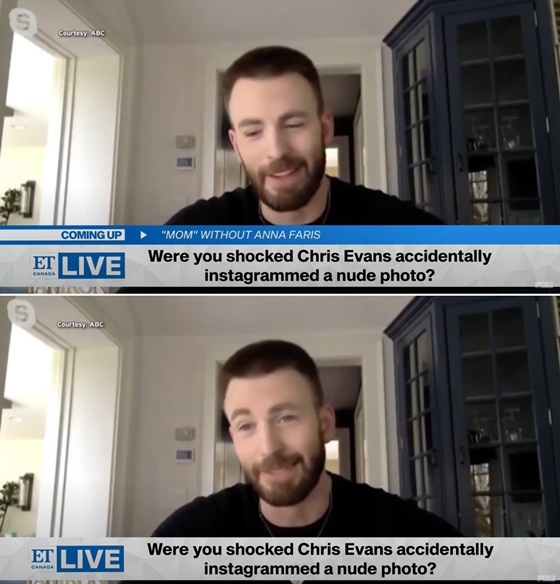 인터뷰 진행자가 노출 사진 공개 심경을 묻자 크리스 에반스는 "창피하기도 하지만 응원해준 팬들도 꽤 있었다"라며 미소를 지었다.